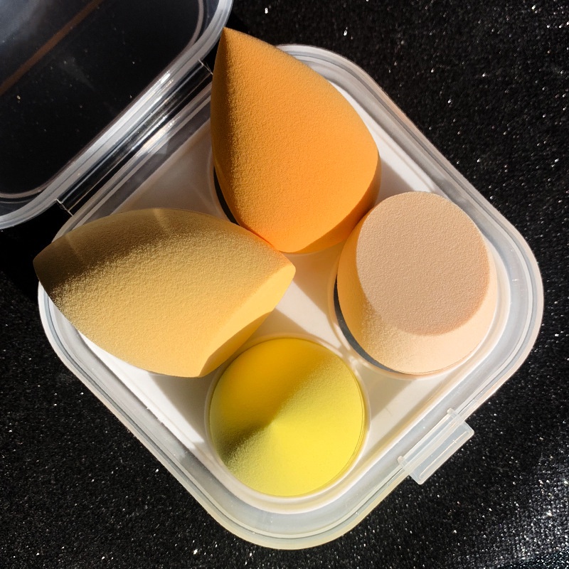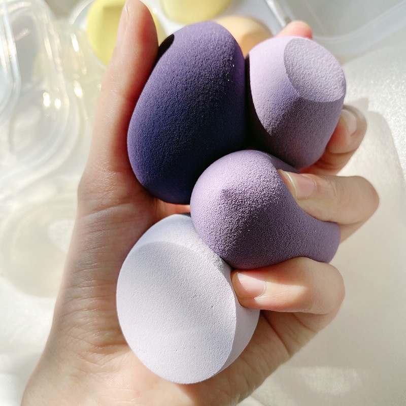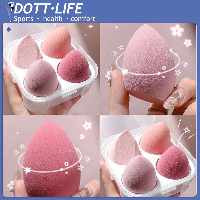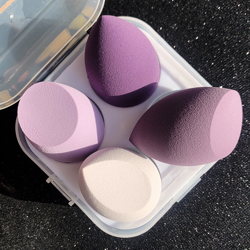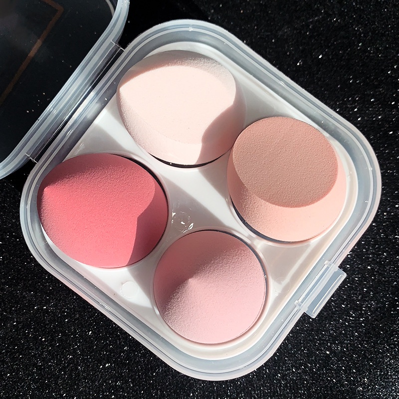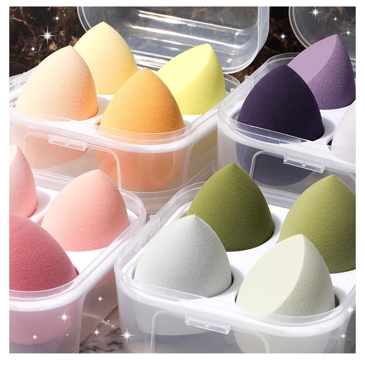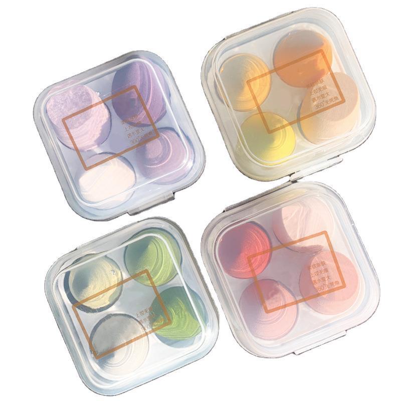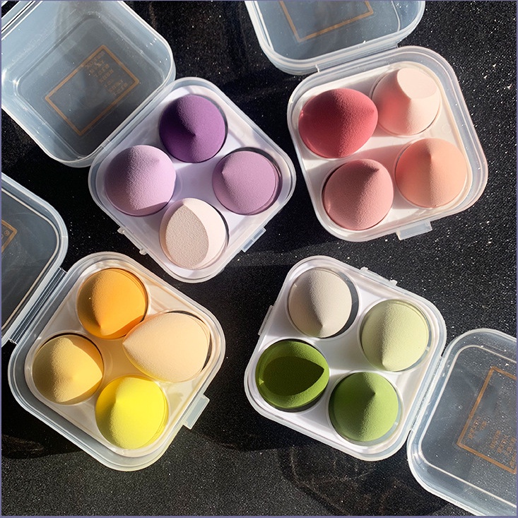 Wet and Dry Beauty Egg Box Q Bomb Egg Shell Sponge Ball 4 Packs Powder Puff Makeup Egg Storage Box Sponge Egg Drop Cut