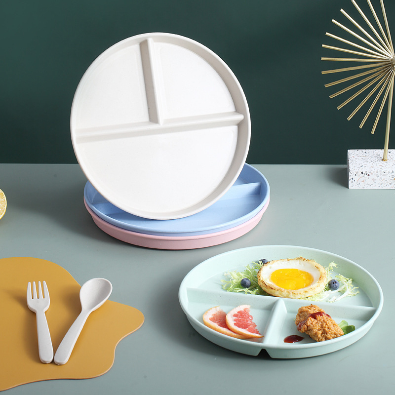 Wheat Straw Round Divider Plate Thickened Fruit Plate Household Bariatric Portion Control Plastic Plate