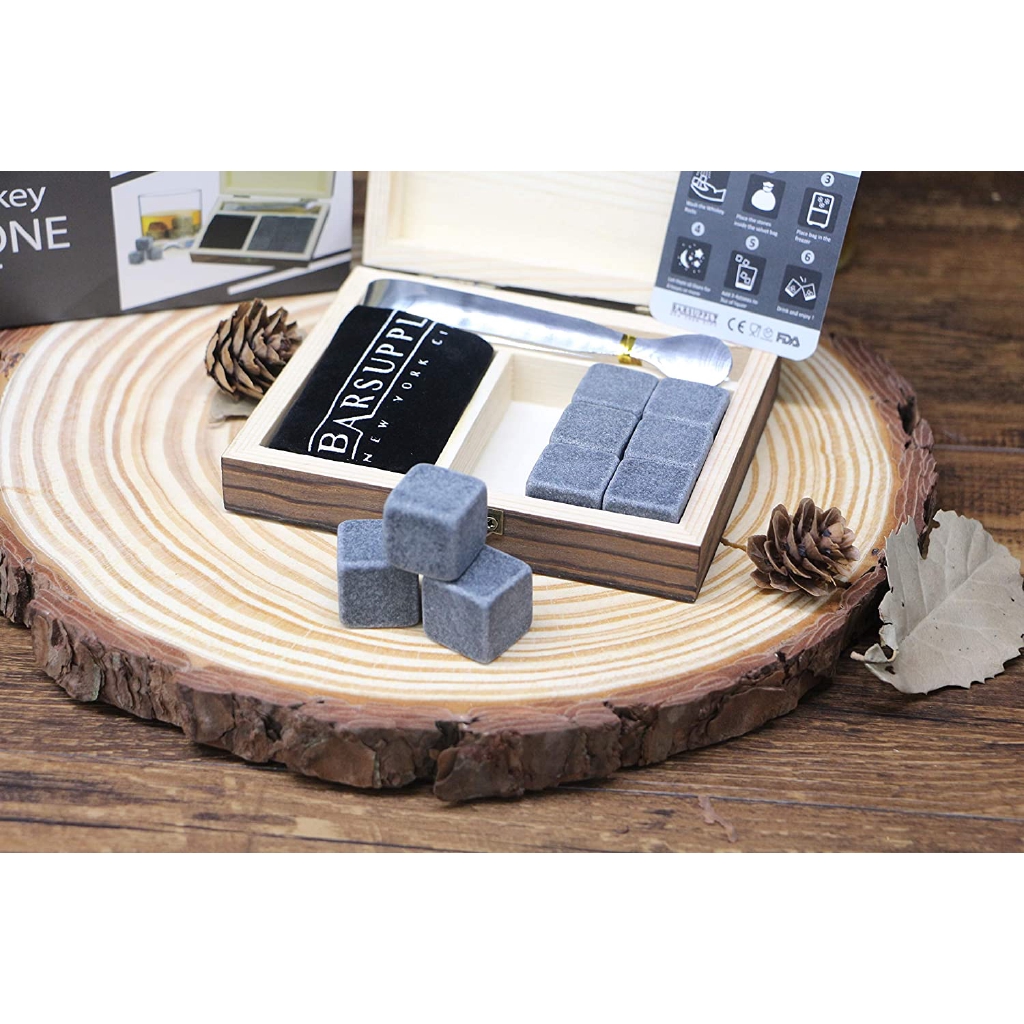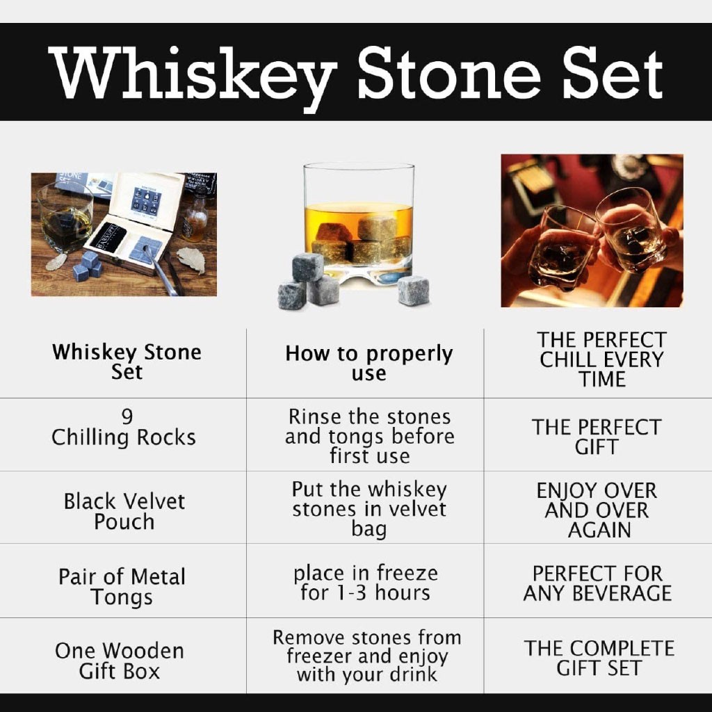 Whiskey Stone Gift Granite Chilling Stones Whisky Rocks Reusable Ice Cubes with Tongs for Men Dad Party Birthday Anniversary Retirement Father's Day