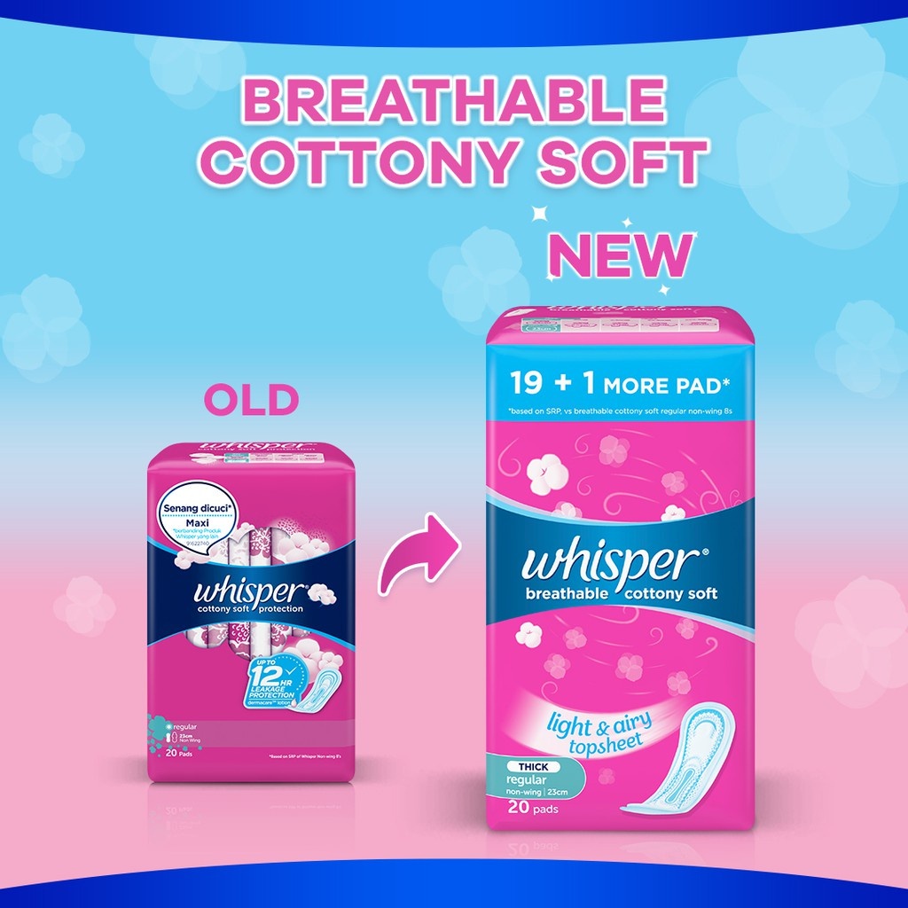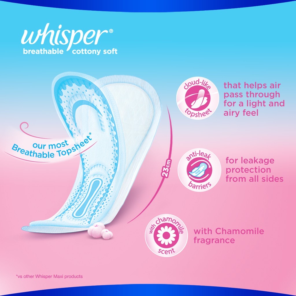Whisper Breathable Cottony Soft Regular 23cm Non-Wing Sanitary Pads - 20's