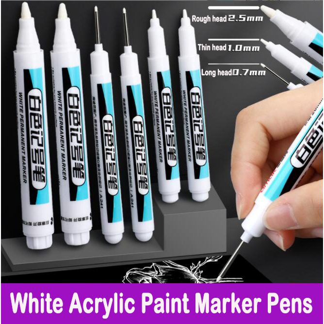 White Acrylic Paint Marker Pens - 0.7-1.0-2.5mm Permanent Oily Waterproof Medium Tip Permanent White Water Based Paint Pen for DIY Projects, Paintings for Rock, Fabric, Wood, Lea