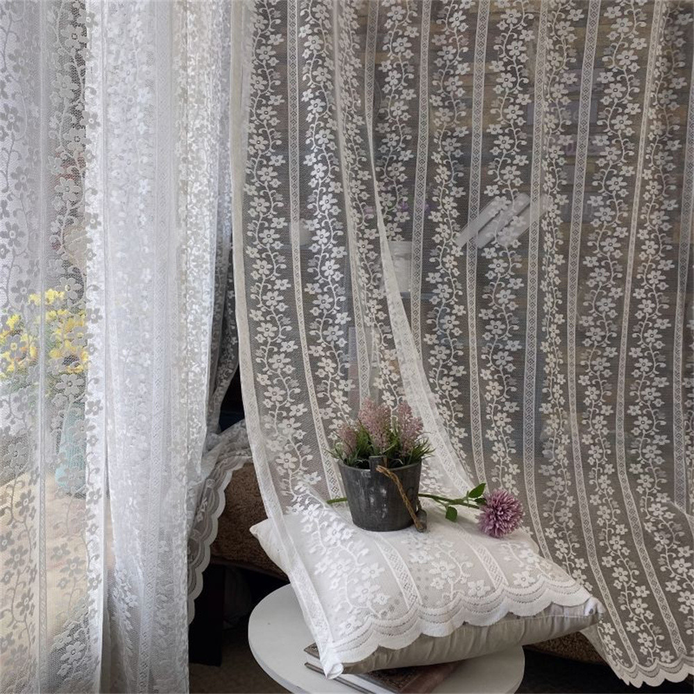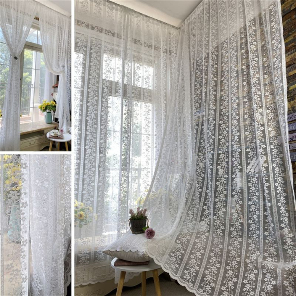 White Floral Lace Sheer Curtains For Living Room Voile Drapes Translucent Romatic Daughters Bedroom Bay Kitchen Sliding Door Window Treatment