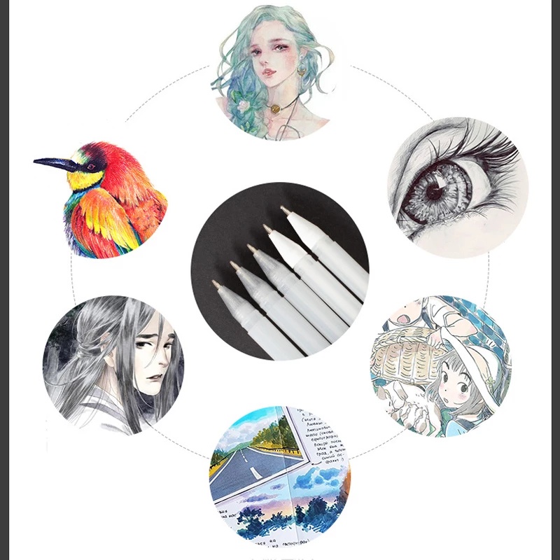 White Ink Gel Pen Highlight Marker Pen 0.8mm Fine Tip for Student Stationery Drawing Art Writing School Supplies