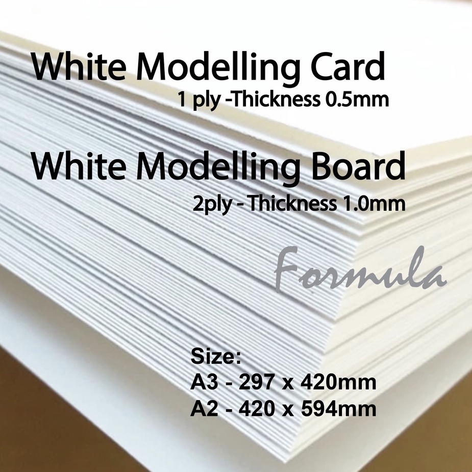 White Modelling Card 1ply 0.5mmv/ Modelling Board 2ply 1.0mm - A3/A2