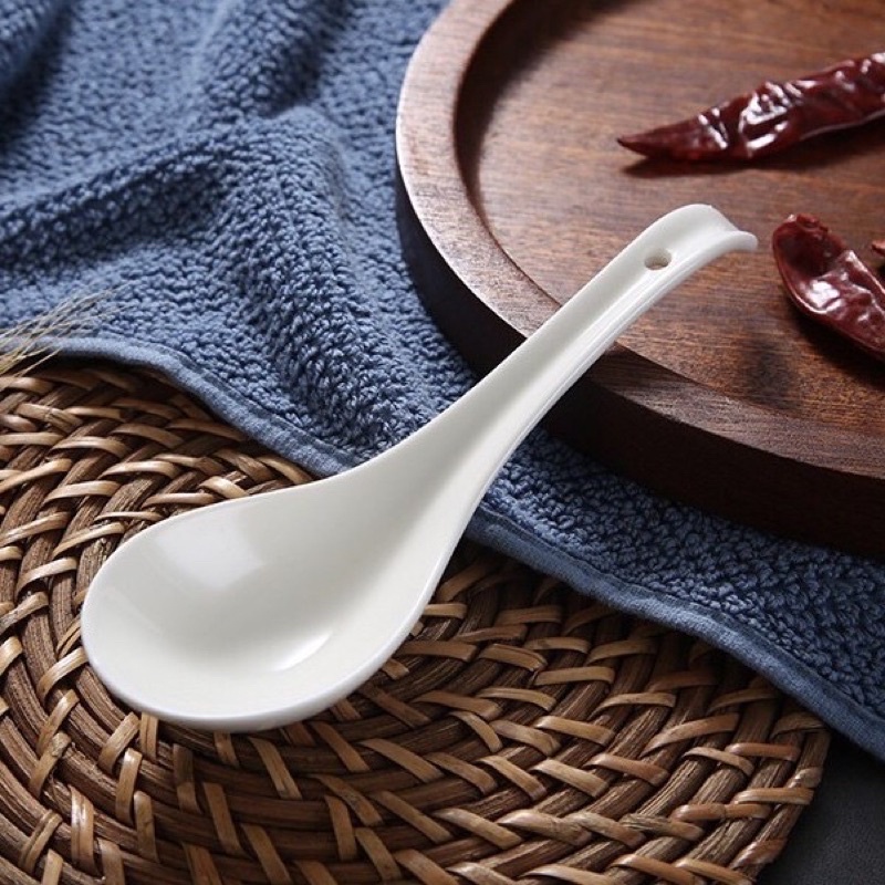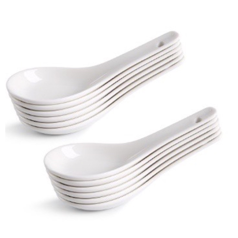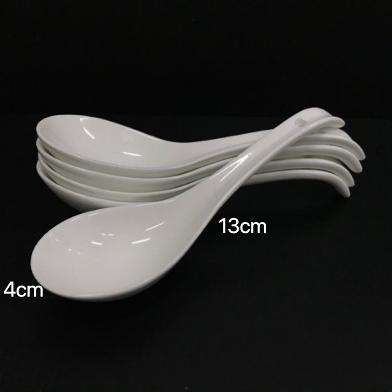 White Porcelain Ceramic Soup Spoon Chinese Spoon Tea Coffee Spoon / Sudu Sup Kaca / Sudu Kopi Kaca
