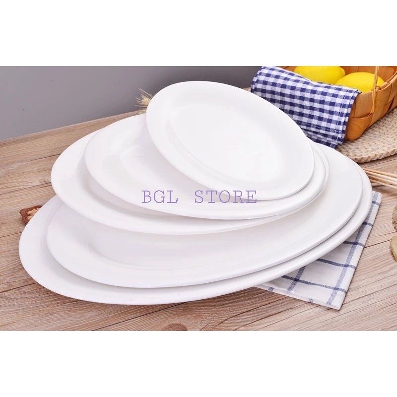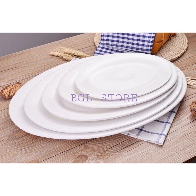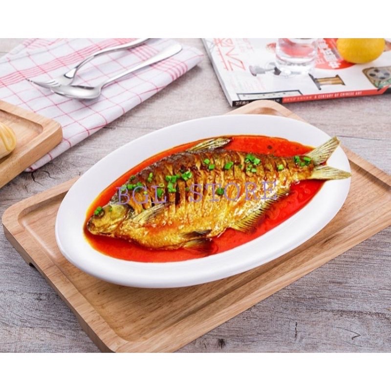 White Porcelain Oval Fish Plate / Pinggan Bujur Putih / Pinggan Ikan Steam