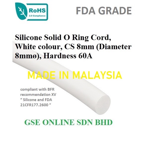 White Silicone Solid Rod, Silicone O Ring Cord, Strip, Hardness 60A, White colour