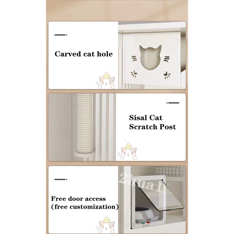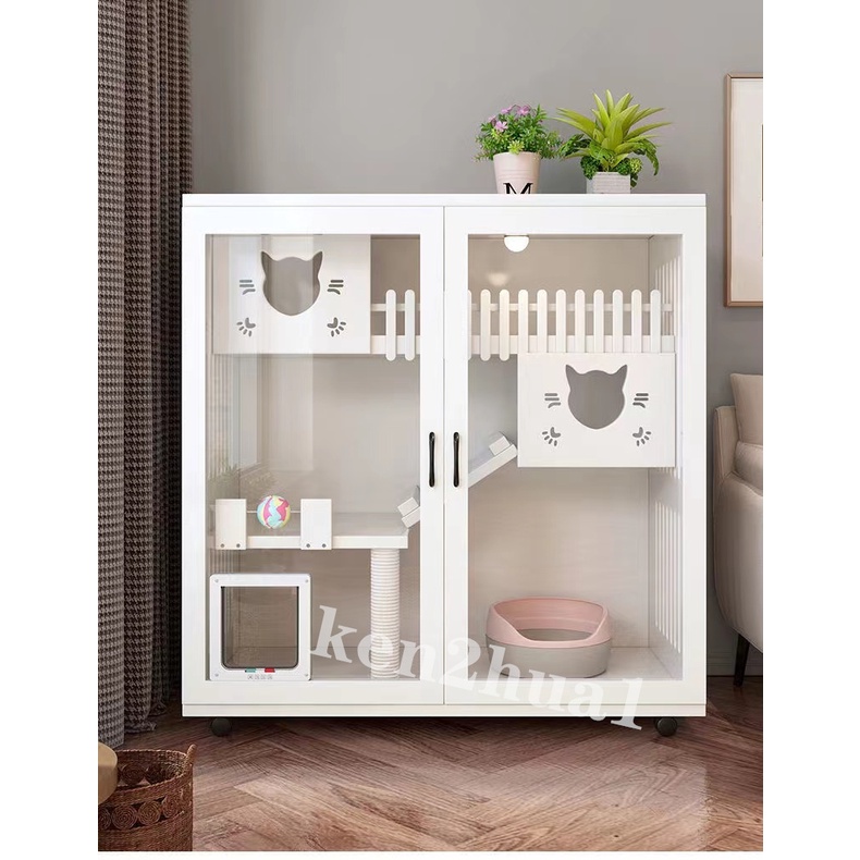 White Solid Wood Cat Wooden House Cat Cage Cat Villa Super Large Cat House Luxury Cat Nest Cat Cabinet Sangkar Kucing