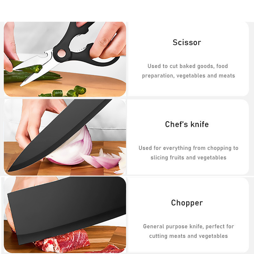 Swiss Thomas Kitchen Knife 9in1Set Sharp & Durable Stainless Steel /Set Pisau Dapur Serbaguna Premium Tajam, Tahan Lama