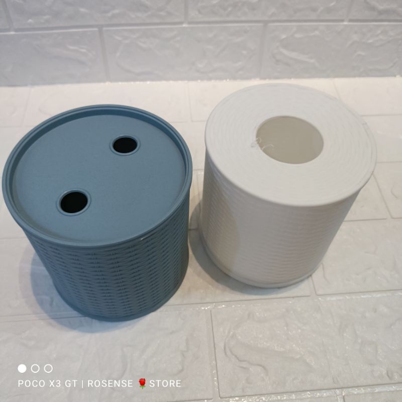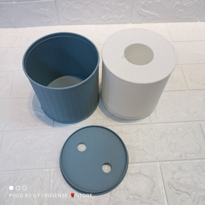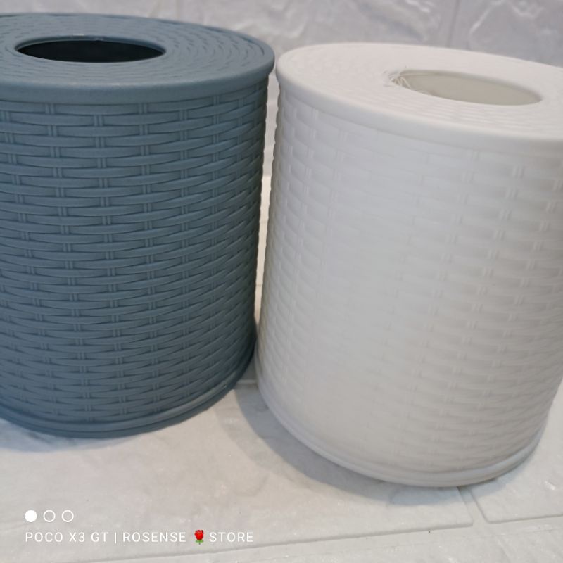 Width 12.5cm Height 13cm Bamboo Style Plastic Roll Tissue Box Home Kitchen Bathroom Paper Towel Boxes Color Grey / White