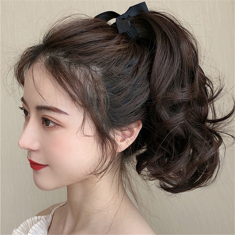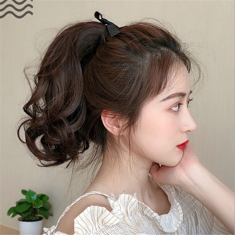 Wig Ponytail Female Long Curly Hair Strap-type Pear Flower Fake Ponytail Big Wave Realistic Medium and Long Section Short Wig Piece