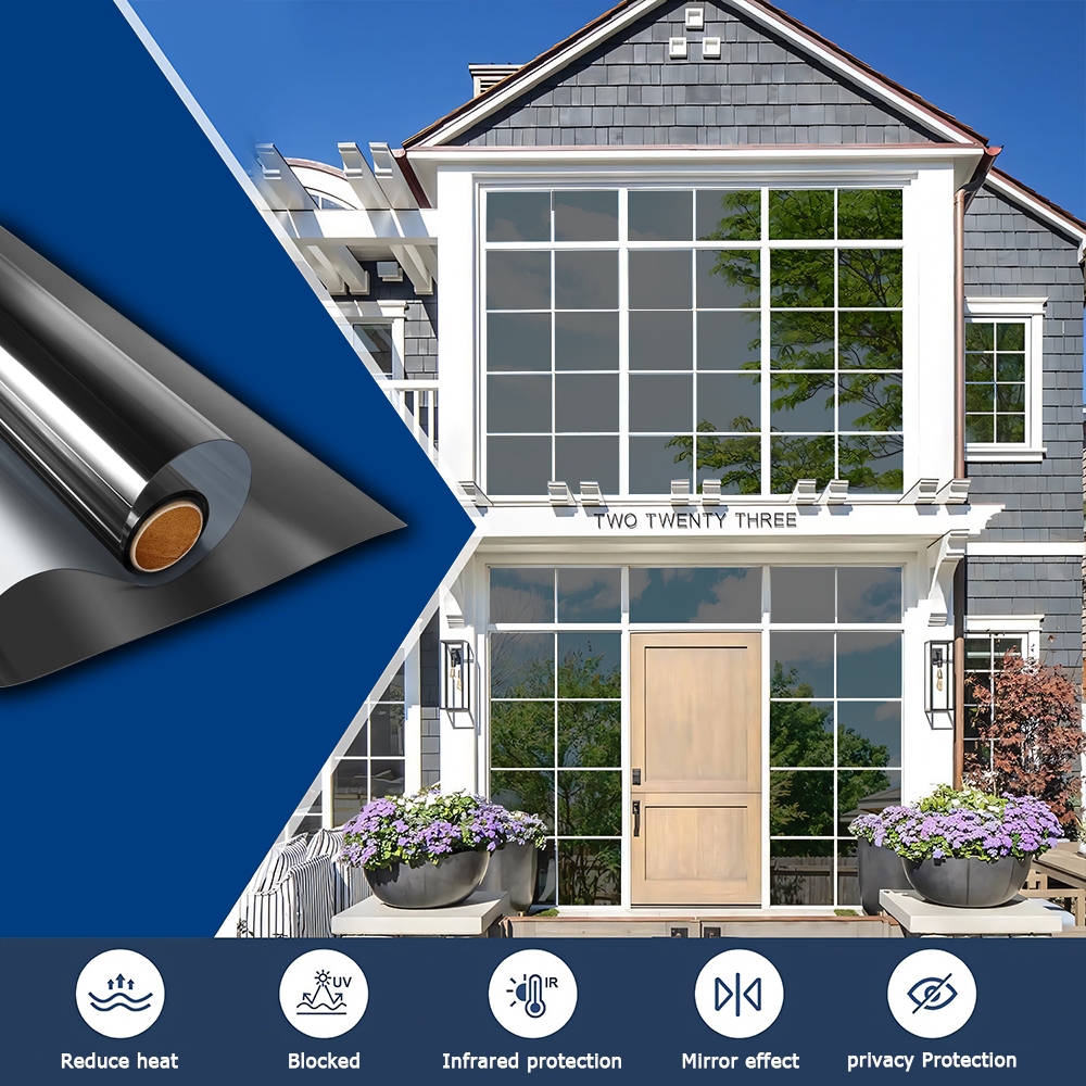 Window Film Self Adhesive One Way Mirror Daytime Privacy Glass Tint Heat Control Anti UV Window Tinted Rumah
