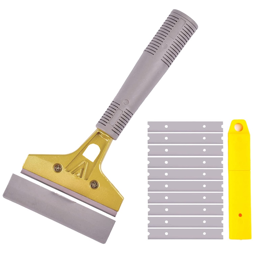 Window Glass Scraper Razor Blade Glass Cleaning Scrapper Knife Glass Floor Tiles Remover Razor Hand Tool with 10 Blade