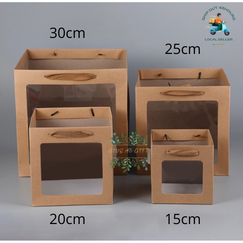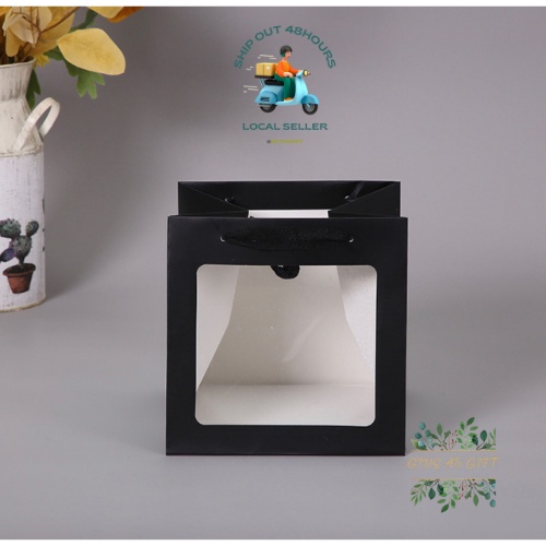 Window Paper Bag/Square Paper Bag/Transparent Bag/Gift Paper Bag with Window/Flower Bouquet Paper Bag/PVC Paper Bag/Cake