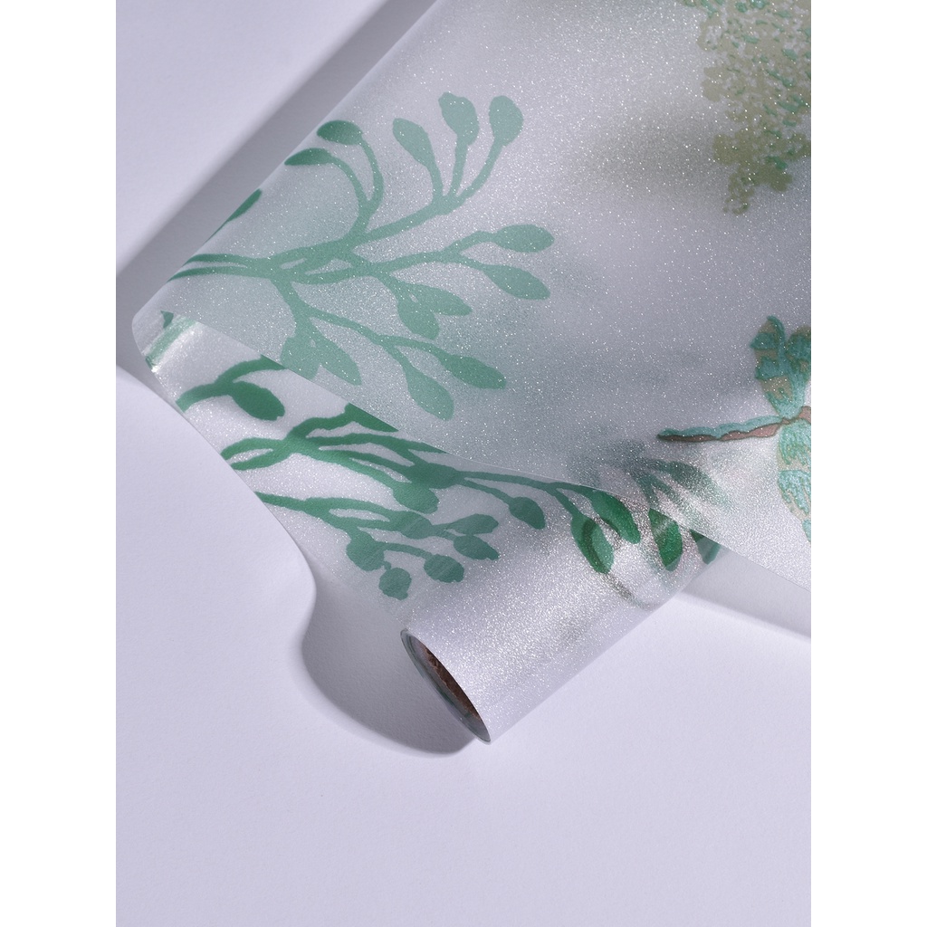 Window Privacy Film Frosted Glass Static Glass Window Film Art Deco, Green Leaves Style fix by water