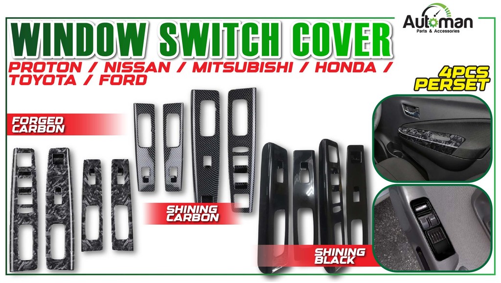 Window Switch Cover Proton Exora Saga Persona Iriz Saga Preve X50 Vios Alphard Vellfire City HRV Shining Black Carbon