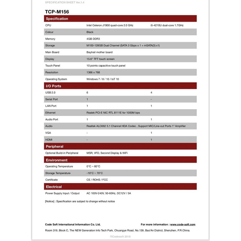 Windows Codesoft TCP-M156 All in One Touch screen Monitor 15 inch