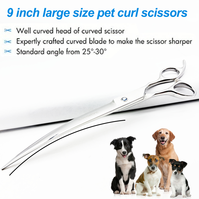 Wingsbro 9-Inch Pet Professional Curved Scissors, Downward Curved Hairdressing Scissors, Textured Chemical Scissors Suitable for