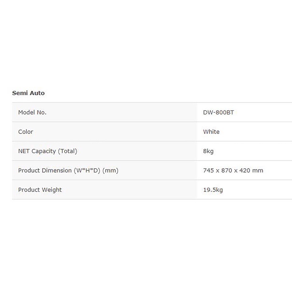 Winia 8kg Washer DW-800BT Twin Tub Semi Auto Washing Machine