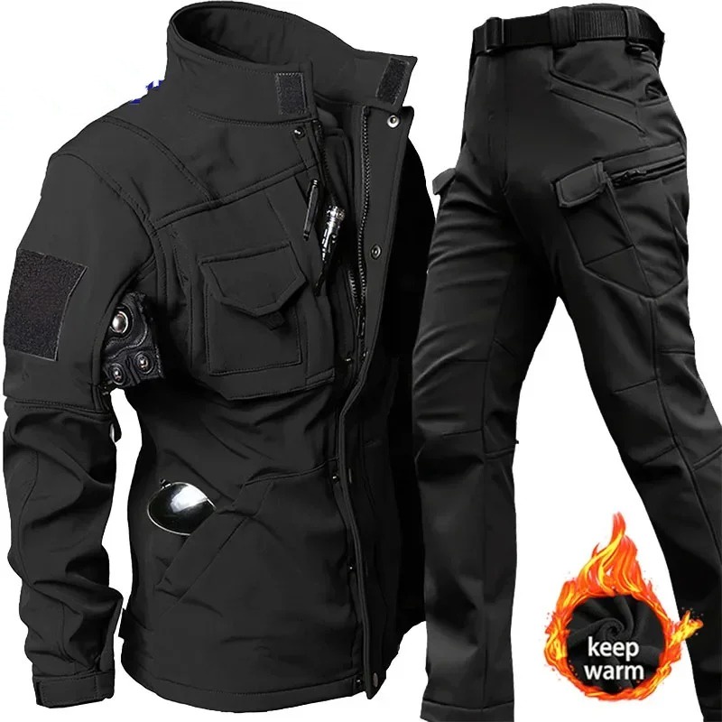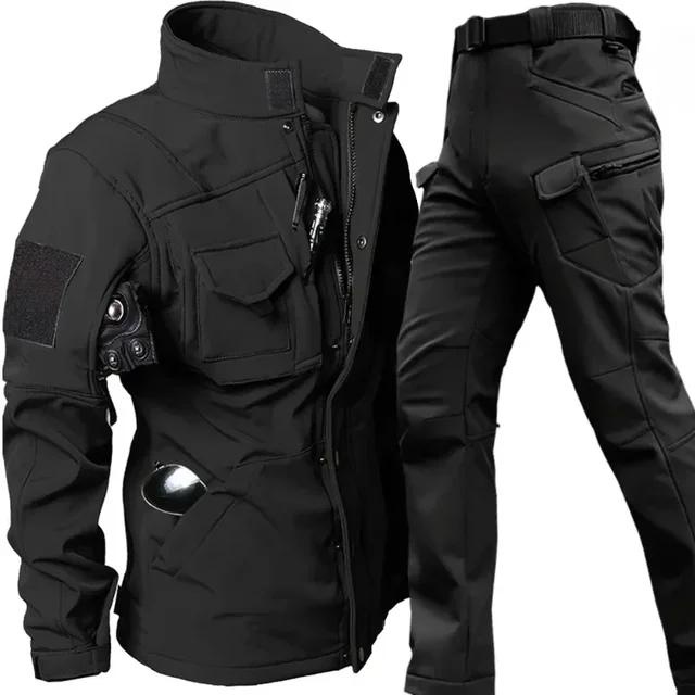 Winter Hiking Fleece Shark Skin Sets Mens Waterproof Windproof Jacket Wear-resisting Thermal Pant Camping Treking Suits