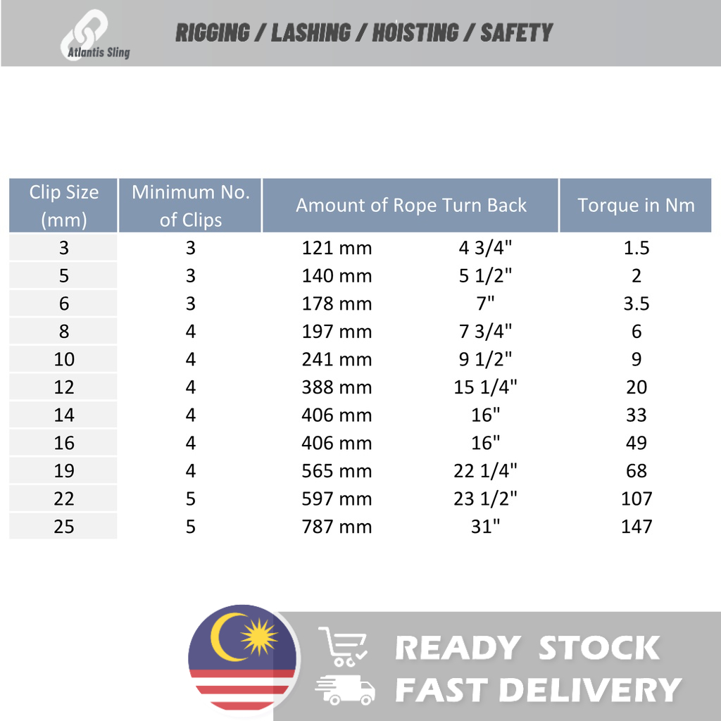 Wire Rope Clip U-Bolt Wire Rope Clamp US Type [READY STOCK MALAYSIA]