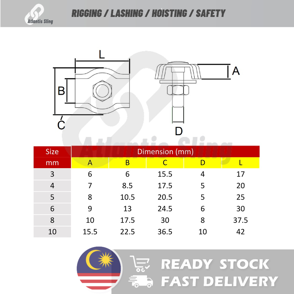 Wire Rope Clip Wire Rope Clamp Stainless Steel 304 Simplex Type [READY STOCK MALAYSIA]