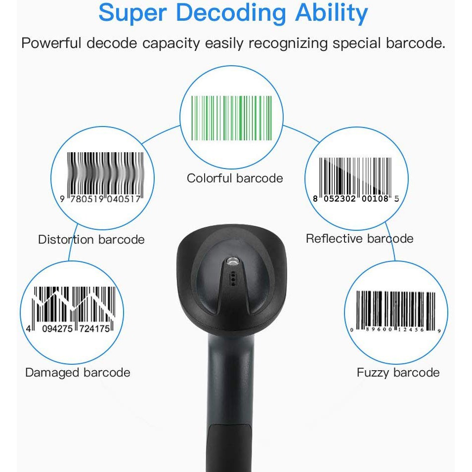 Wired/Wireless 2D QR Code Barcode Scanner (Support E-Wallet QR Code Scanning on Mobile Phone)