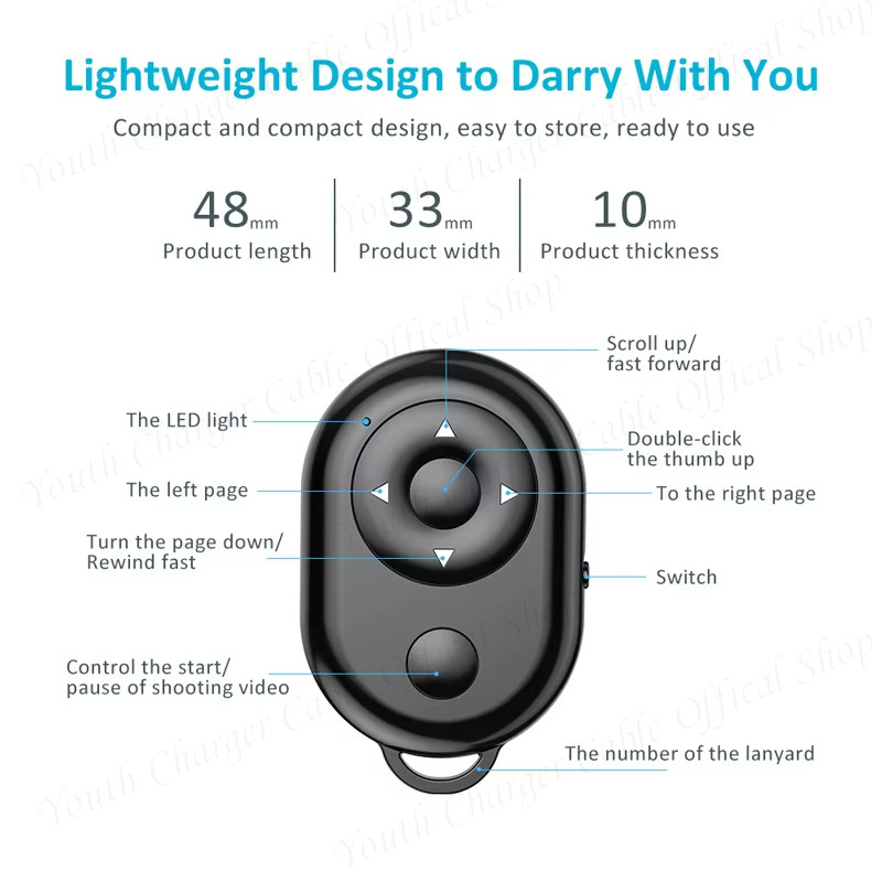 Wireless Controller Portable Smart Bluetooth Remote Control Selfie Shutter Button/ Video Like Controller for ios/Android