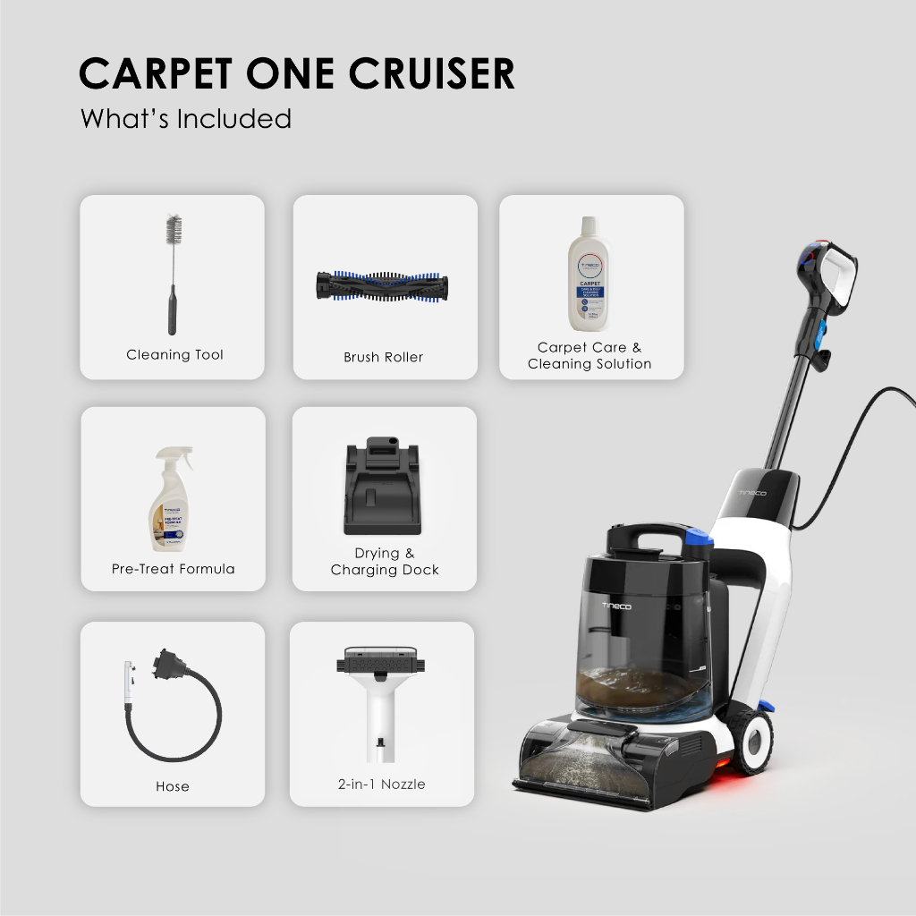 Tineco Carpet One Cruiser Smart Vacuum Cleaner | 130AW Suction | 75°C PowerDry Tech | Hot-air FlashDry Self Cleaning