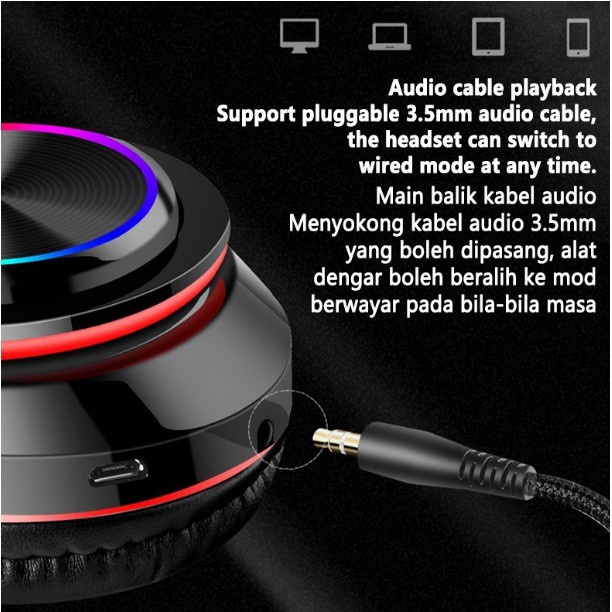 B39 Headphone Bluetooth Gaming Headset 5.0 Colorful LED Bass Stereo Wireless Headphones Over Ear With Microphone