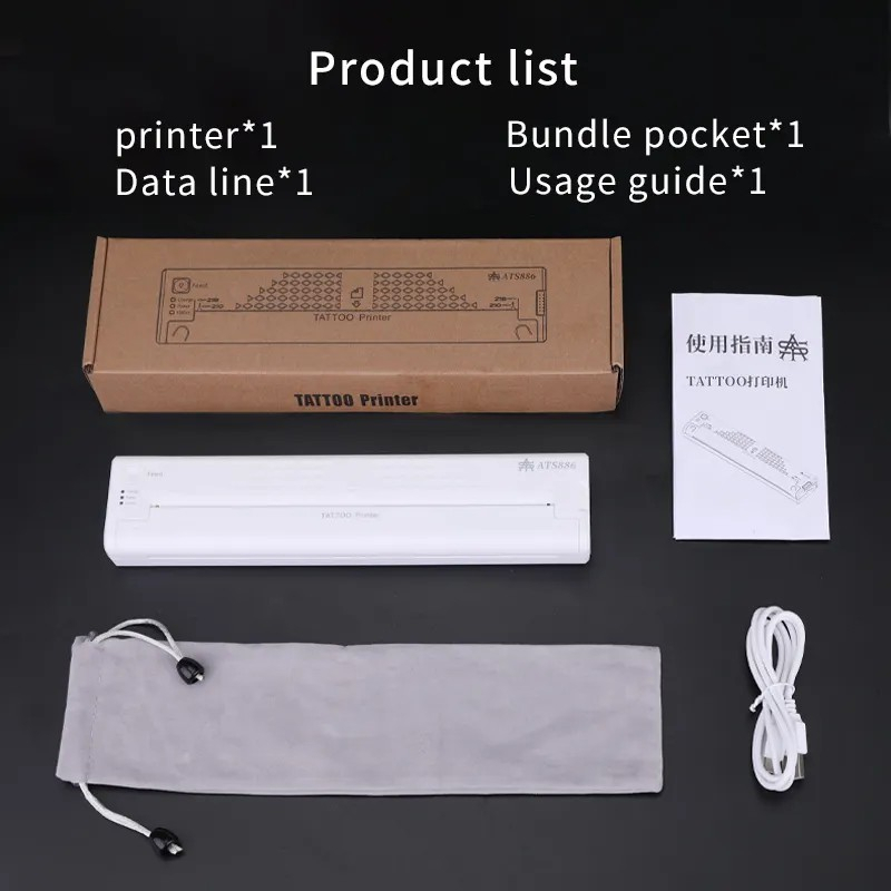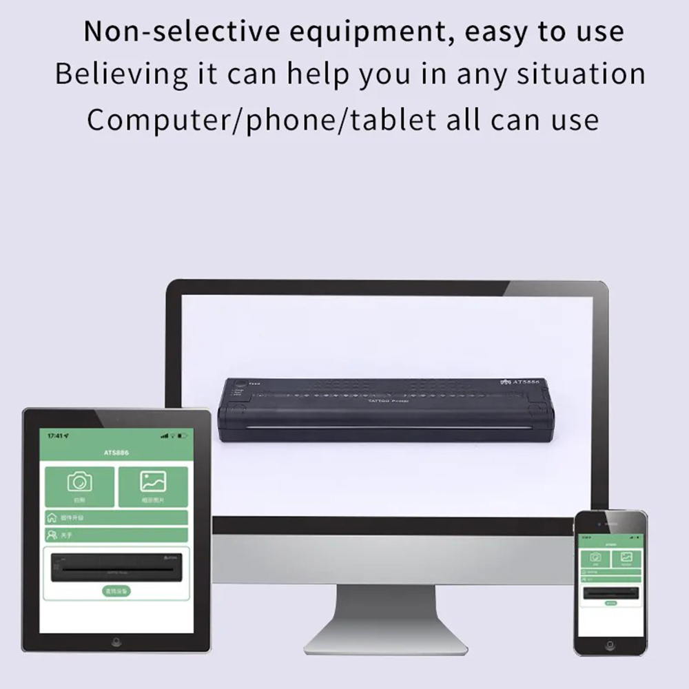 Wireless Mini Rechargeable Built-in Battery Tattoo Stencil Machine Printer Supported Phone APP WinXP, Win7,Win8,Win10
