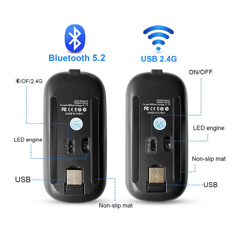 Wireless Mouse Bluetooth 2.4Ghz Receiver Rechargeable Mouse Receiver Adjustable Gaming Mice Tetikus for PC Laptop IPad