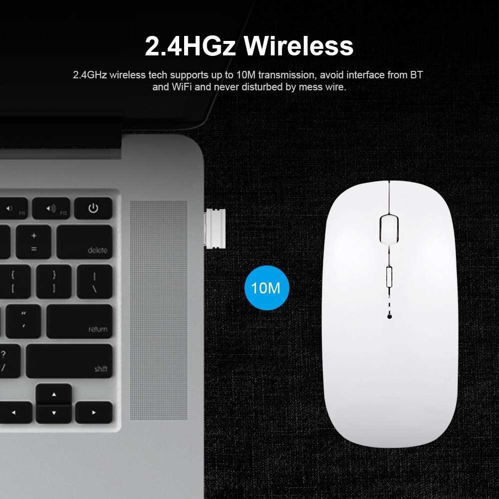 Wireless Mouse Portable BT Mouse Rechargeable Ergonomic 2.4GHz USB Optical Mice Silent Dual Mode for PC Laptop(White) (