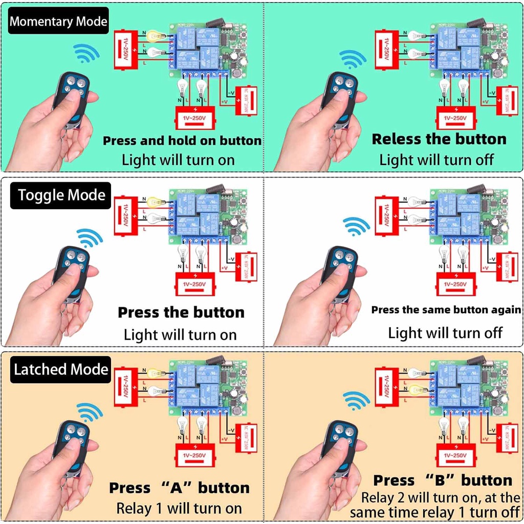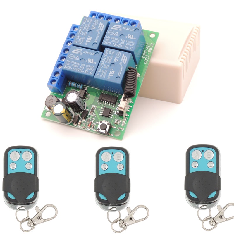 Wireless Remote Control Switch RF Relay 433Mhz AC85V~250V 4 Gang Relay Receiver And Transmitter For Garage And Light Switch
