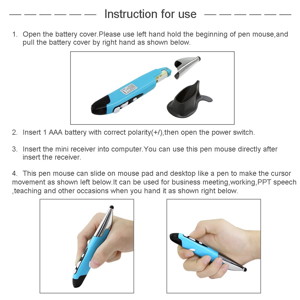 Wireless Touch Pen Mouse 1600DPI DPI USB Optical Pen Mice With Web Browsing 4 Buttons PPT Pointer Mini Mouse For Laptop