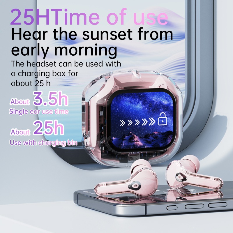 Wireless Touch Screen Headphones, Full-Color Transparent Earbuds , ANC Noise Reduction, HIF Stereo Sound