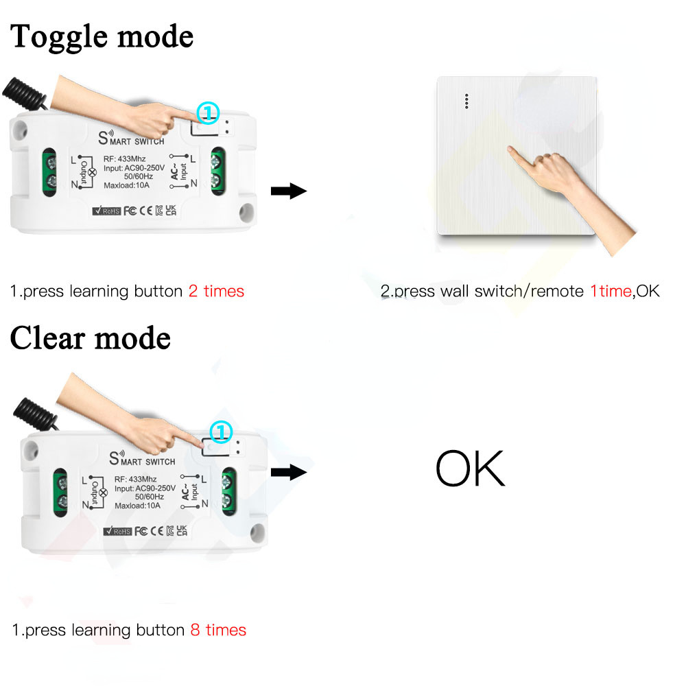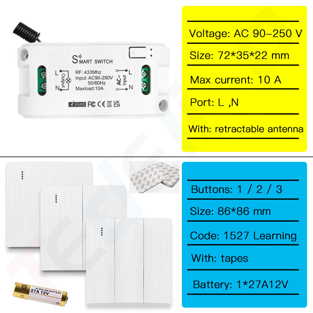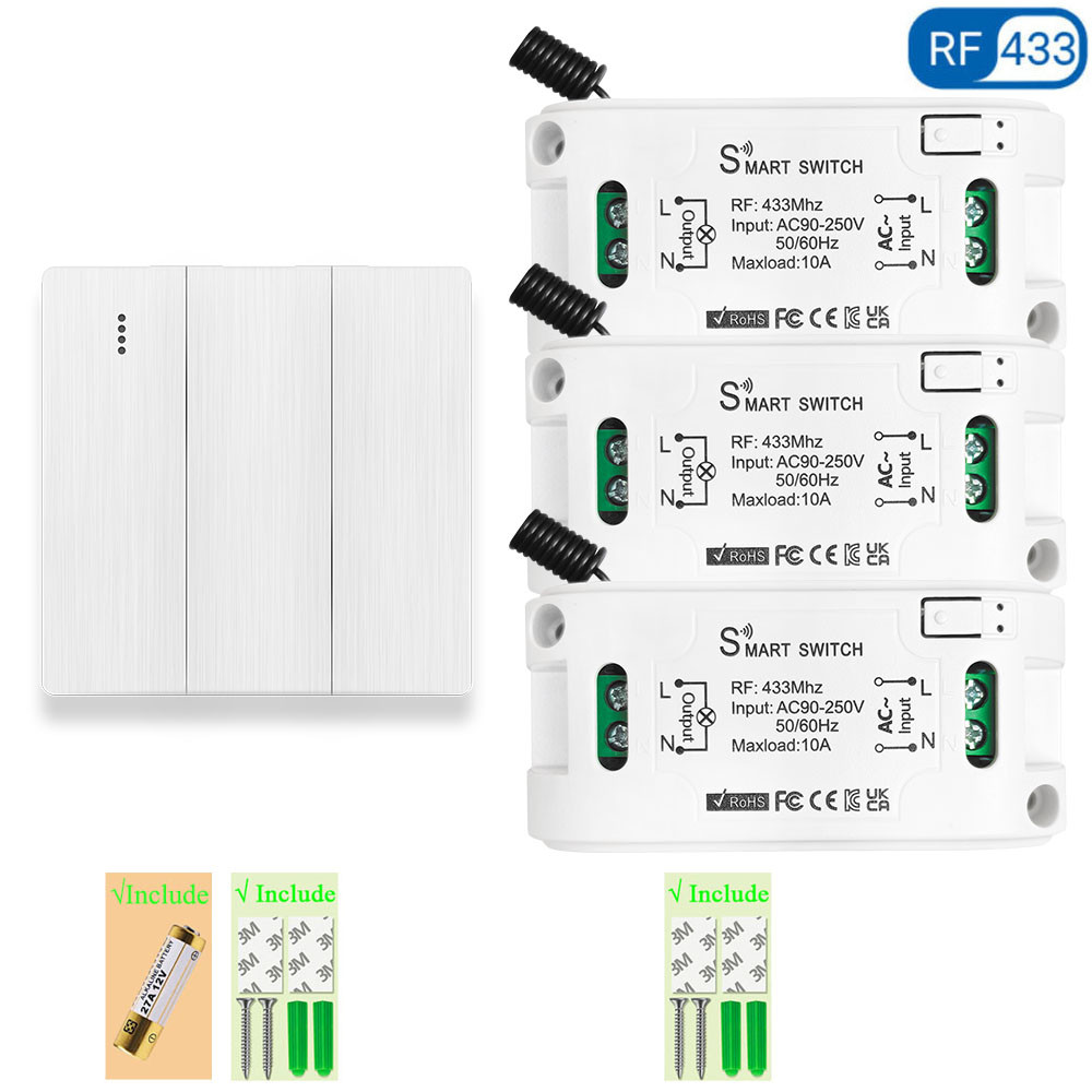 Wireless Wall Switch and Light Remote Control Switch 10A 110V 220V 230V Relay Receiver Interruptor for Lamp LED Bulb