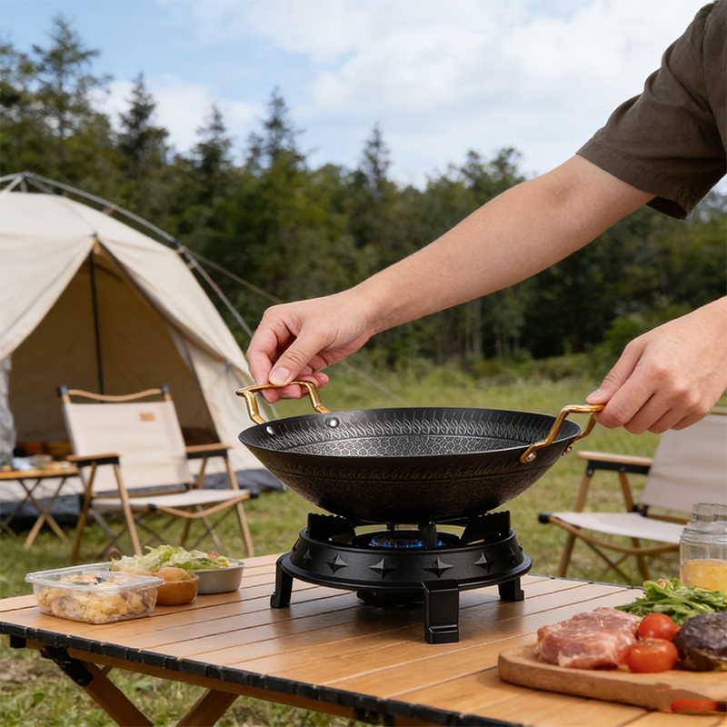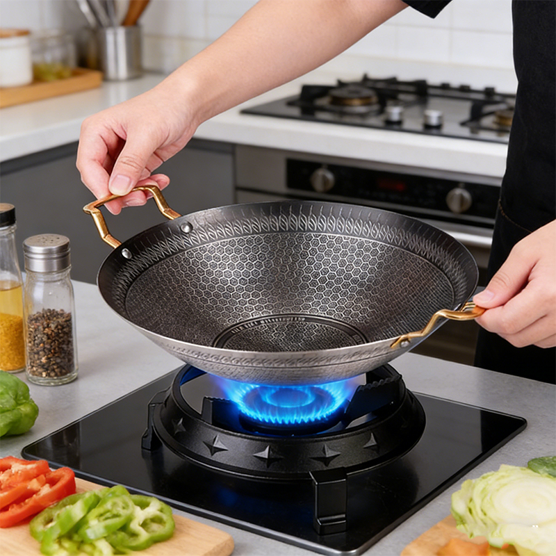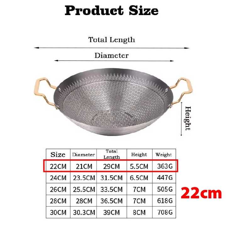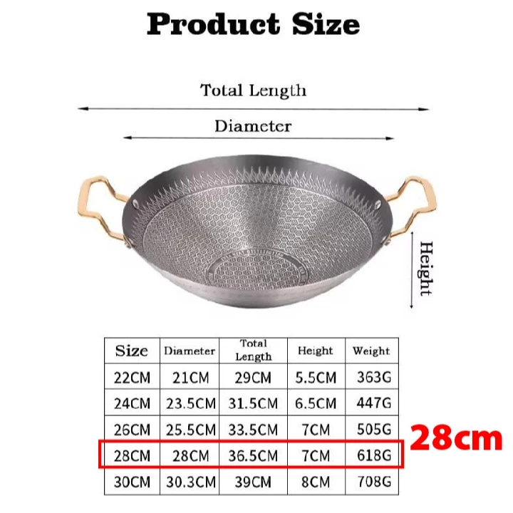 28cm Stainless Steel Honeycomb Wok With Golden Handle Kuali Sarang Lebah Keluli Tahan Karat Non Stick Stainless Steel