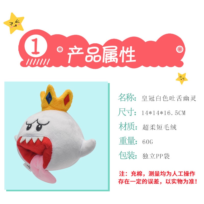 With Tag Mario Crown Vomiting Tongue Shy Ghost Funny Small Plush Doll