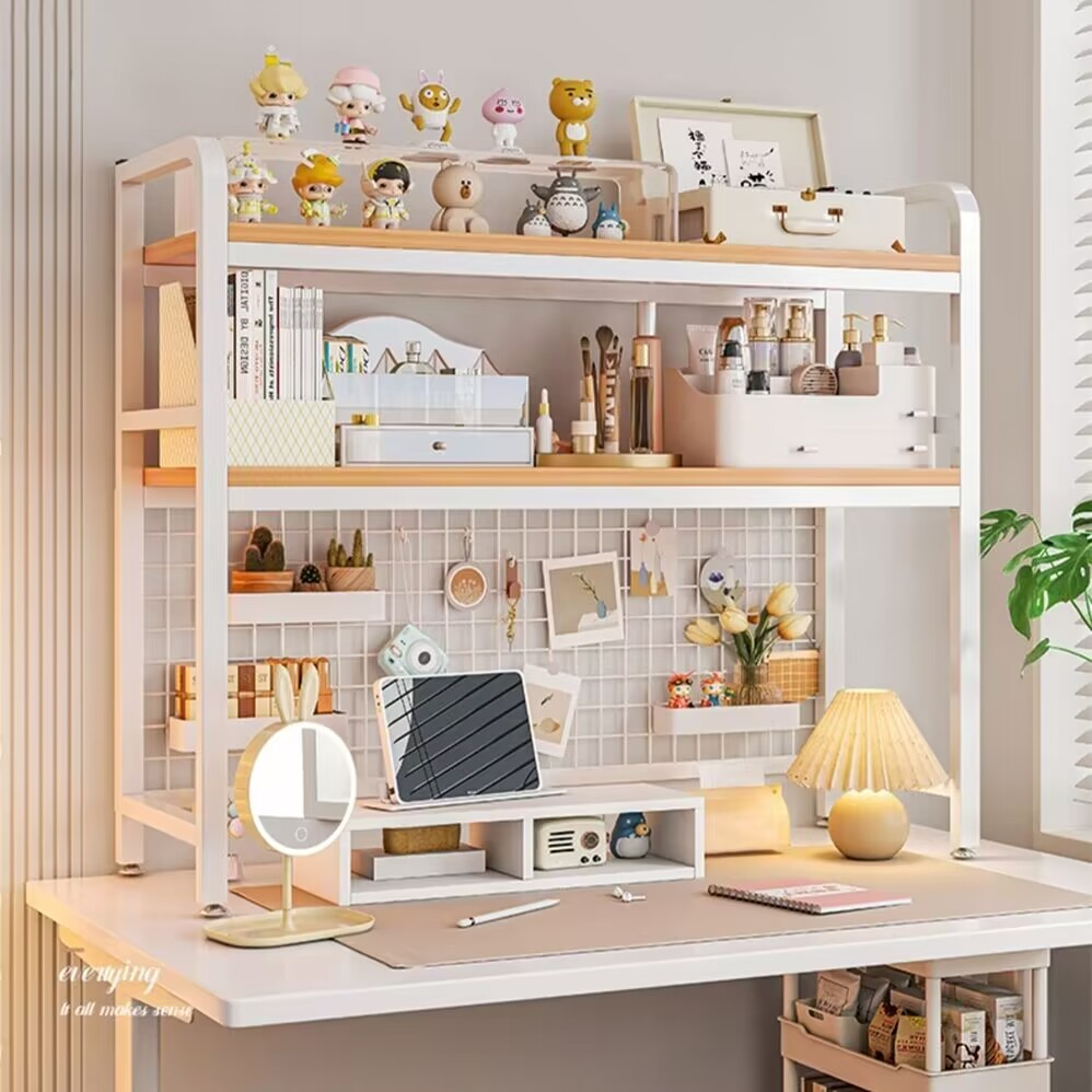 With grid bookshelf desk storage rack desktop multi-layer wrought iron shelf student computer desk table hole board