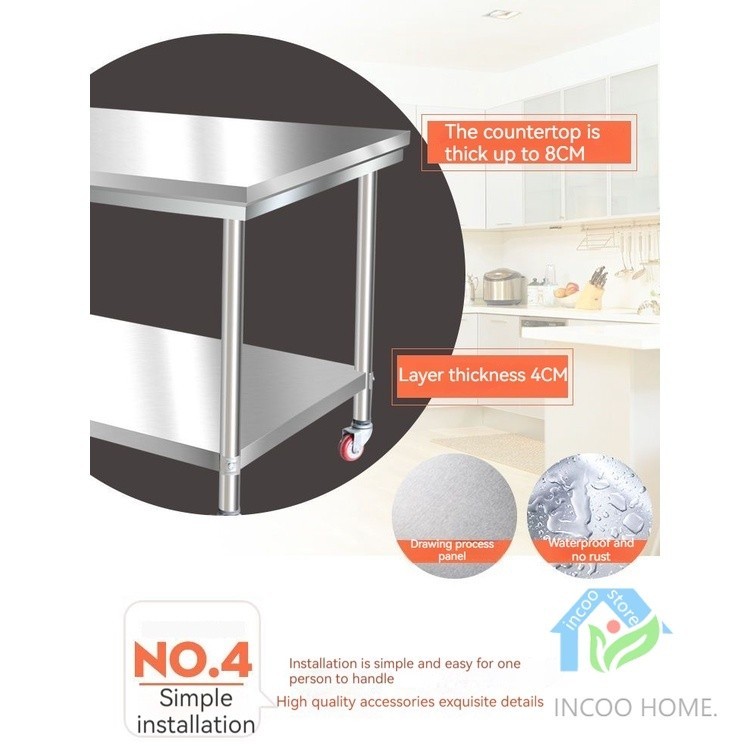💗With wheels/ WORK TABLE STAINLESS STEEL/150CM(5FT)/180CM(6FT) Stainless Steel Kitchen Worktable / Meja / Working Table💗