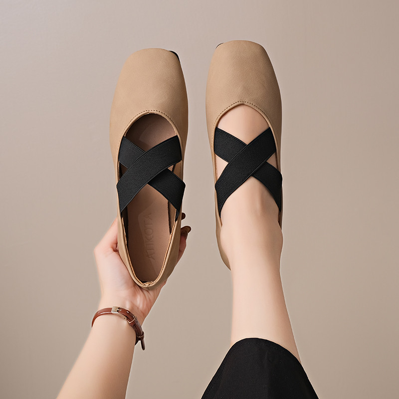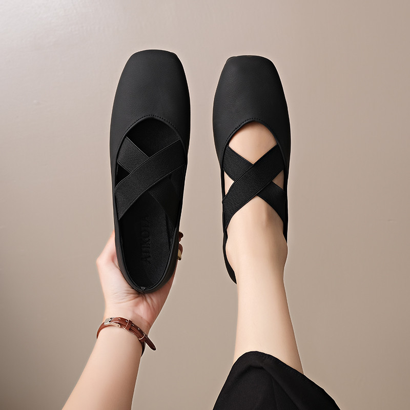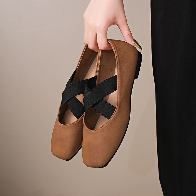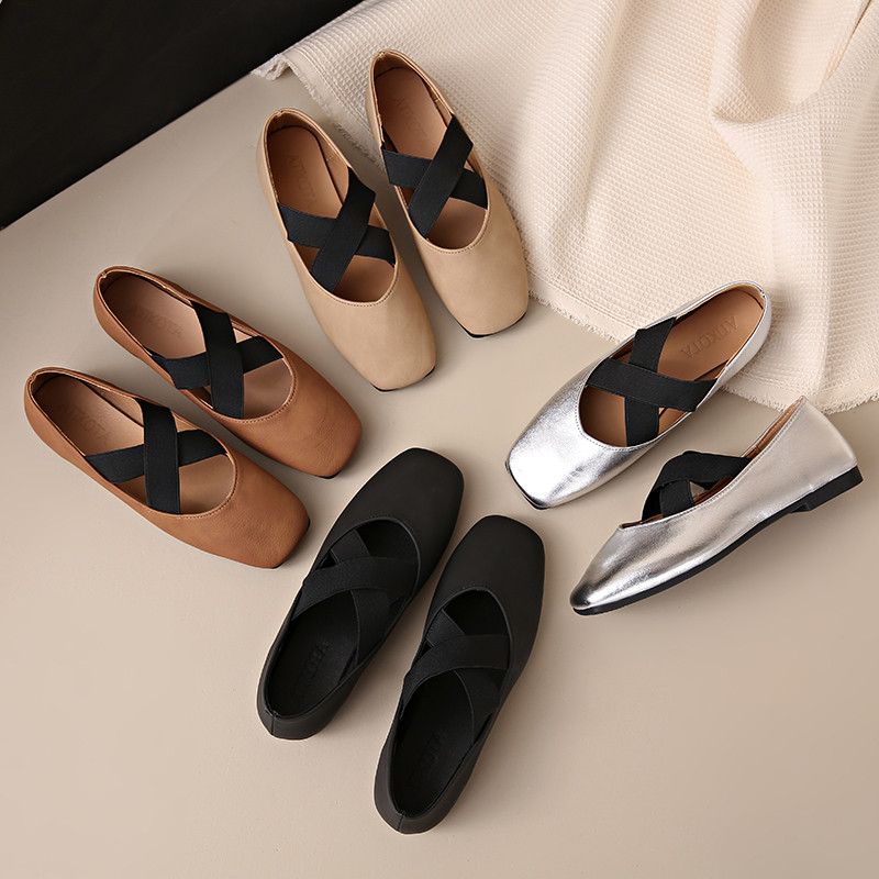 Women's Cross-Strap Ballet Flat Shoes - Casual Pumps, Large Sizes Available
