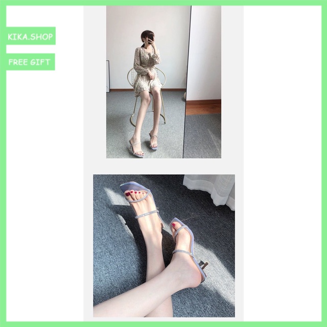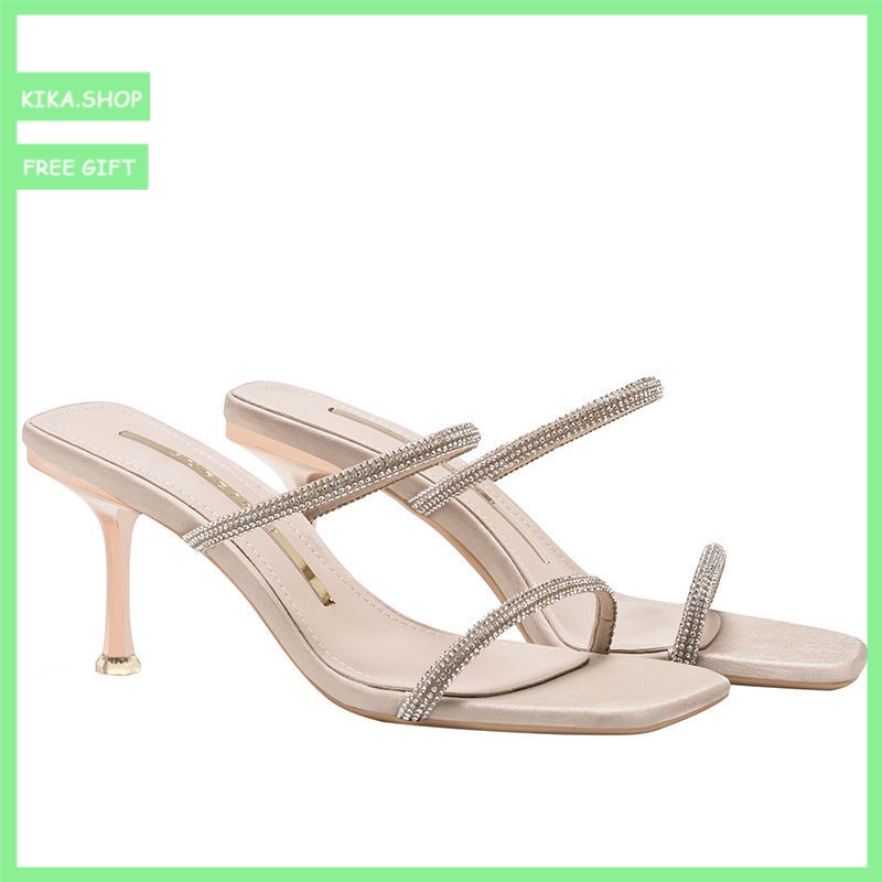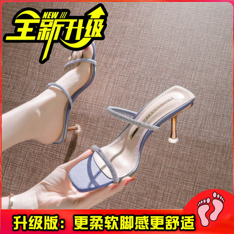 RAYA! Women's Crystal High-Heeled Sandals Thin Heeled Open Toe2021Summer New All-match A- line with Half Slippers outside Wear Net Red Tide
