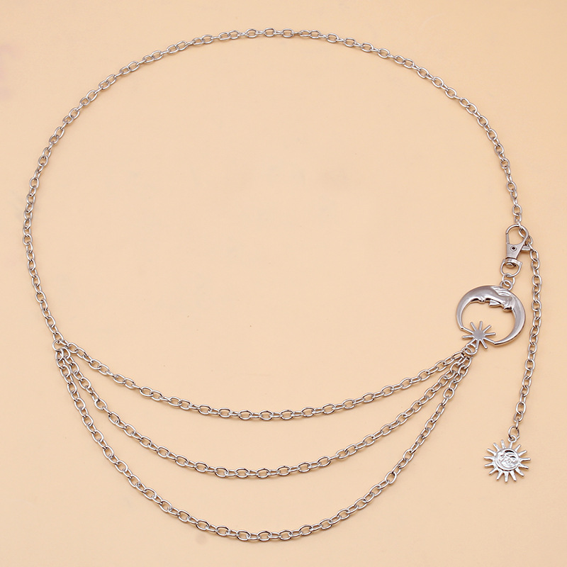Women's European and American Y2K metal moon chain belt high-end waist chain embellishment jeans clothes chain