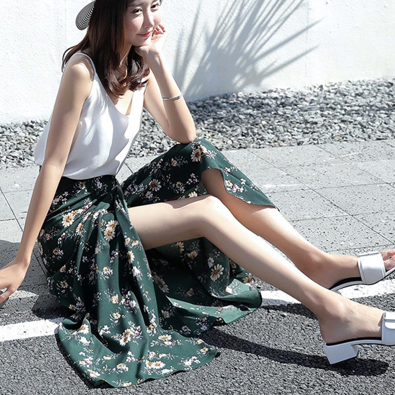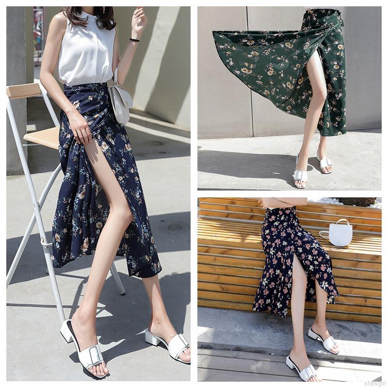 Women's Fashion Floral Printed Side Slit Chiffon Skirt