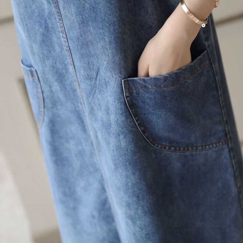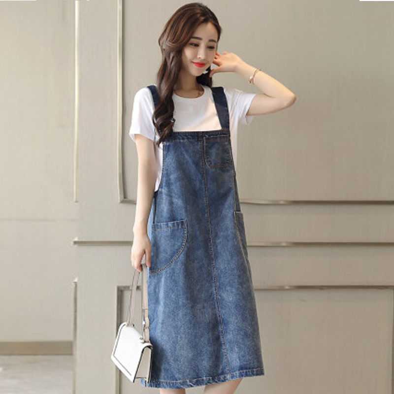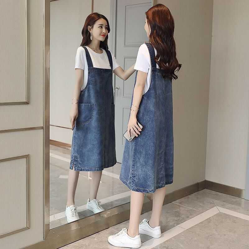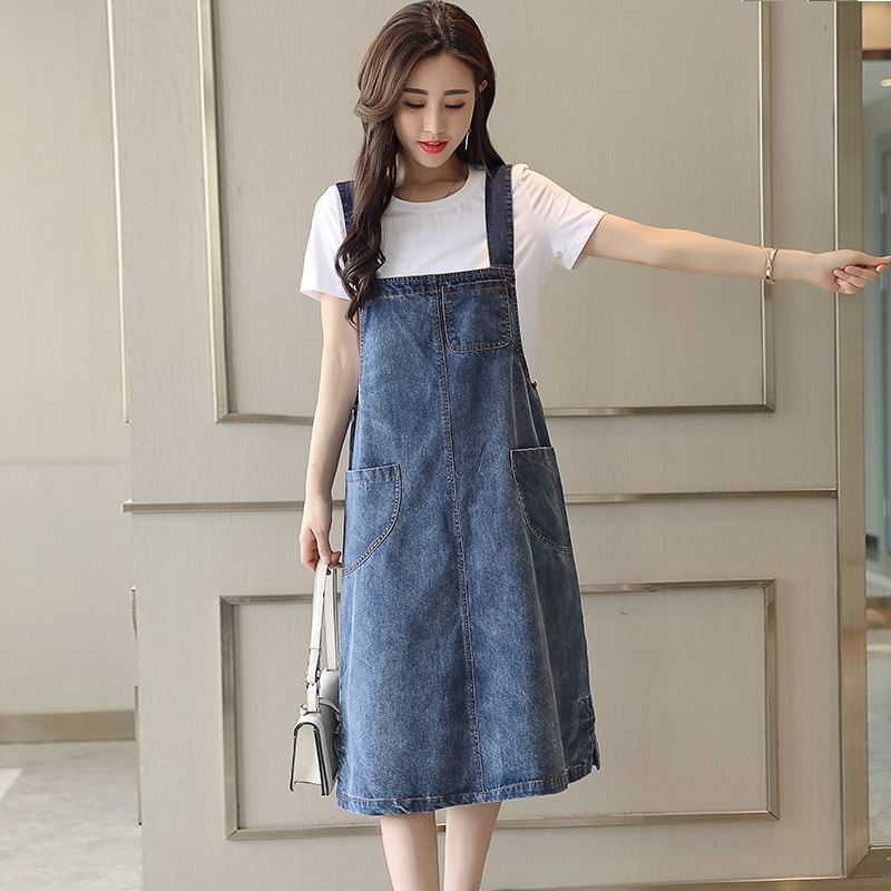 Women's Hong Kong-Style Denim Suspender Dress Spring and Summer New Korean Style Loose Casual Midi Women Wear Dress