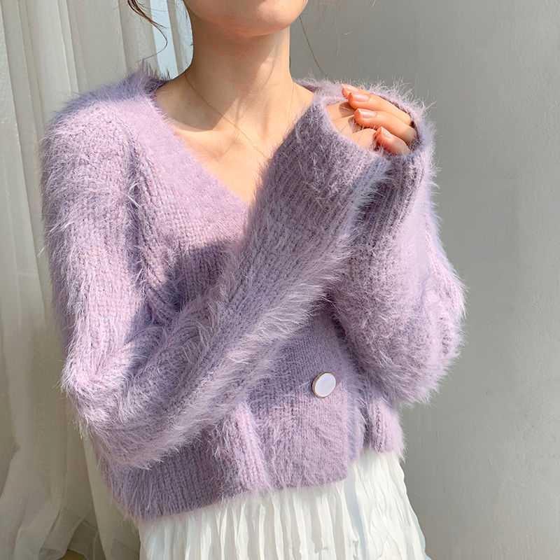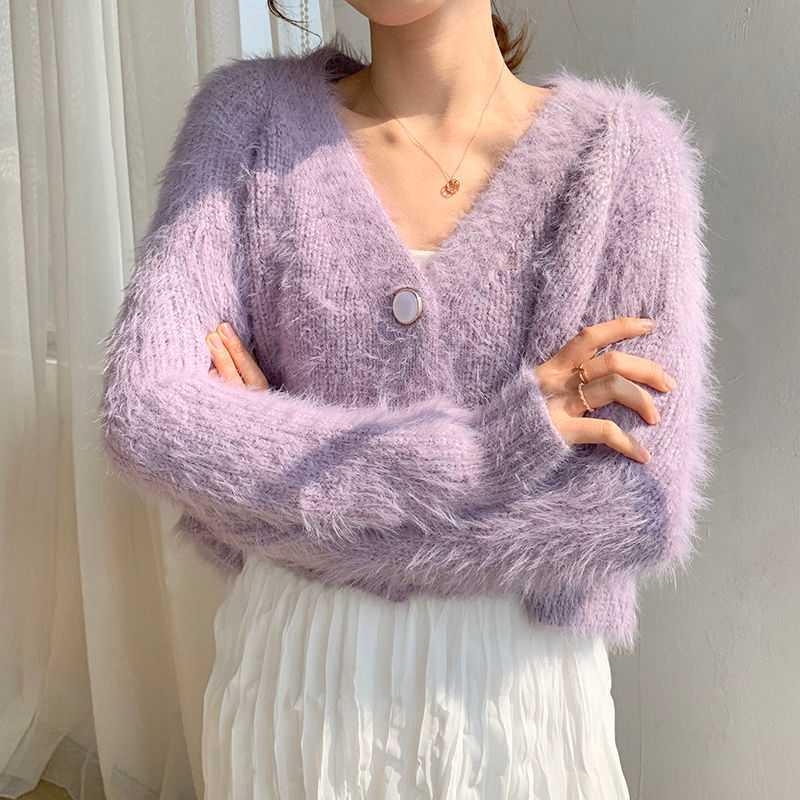 Women's Korean Fashion New Korean Loose Long-sleeved Knit Sweater Cardigans Outwear Coat