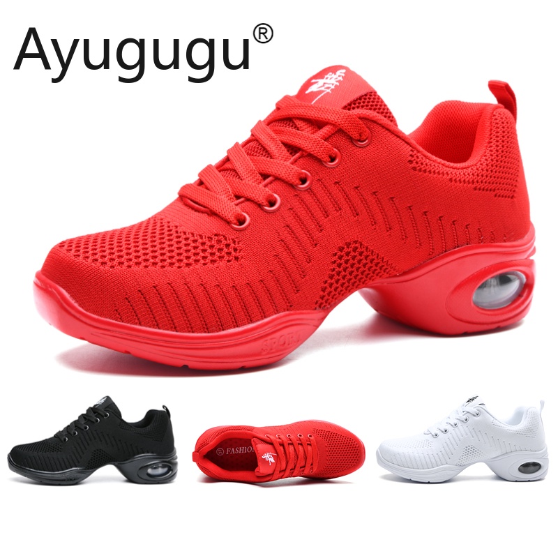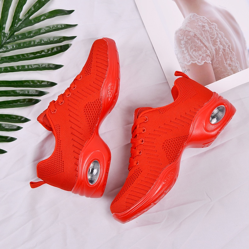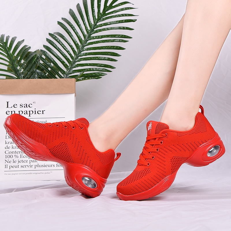 Women's Sneakers Black Dancing Shoes Ladies Dance Shoes Breathable Soft Bottom Line Dancing Shoes Woman Latin Dancing Shoes For Women Comfortable Sports Shoes red Kasut raya