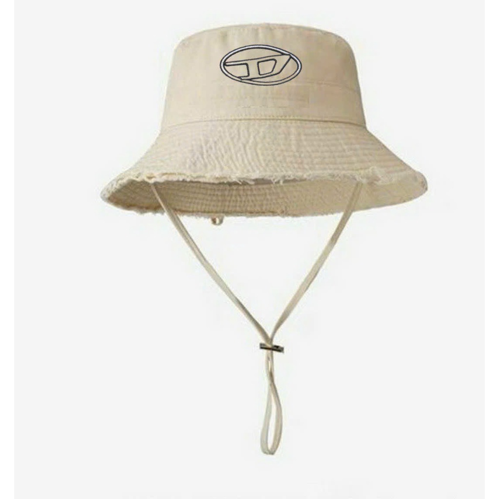 Women's bucket hat - D-logo tassel round brimmed hat with string, super cute, stylish for women