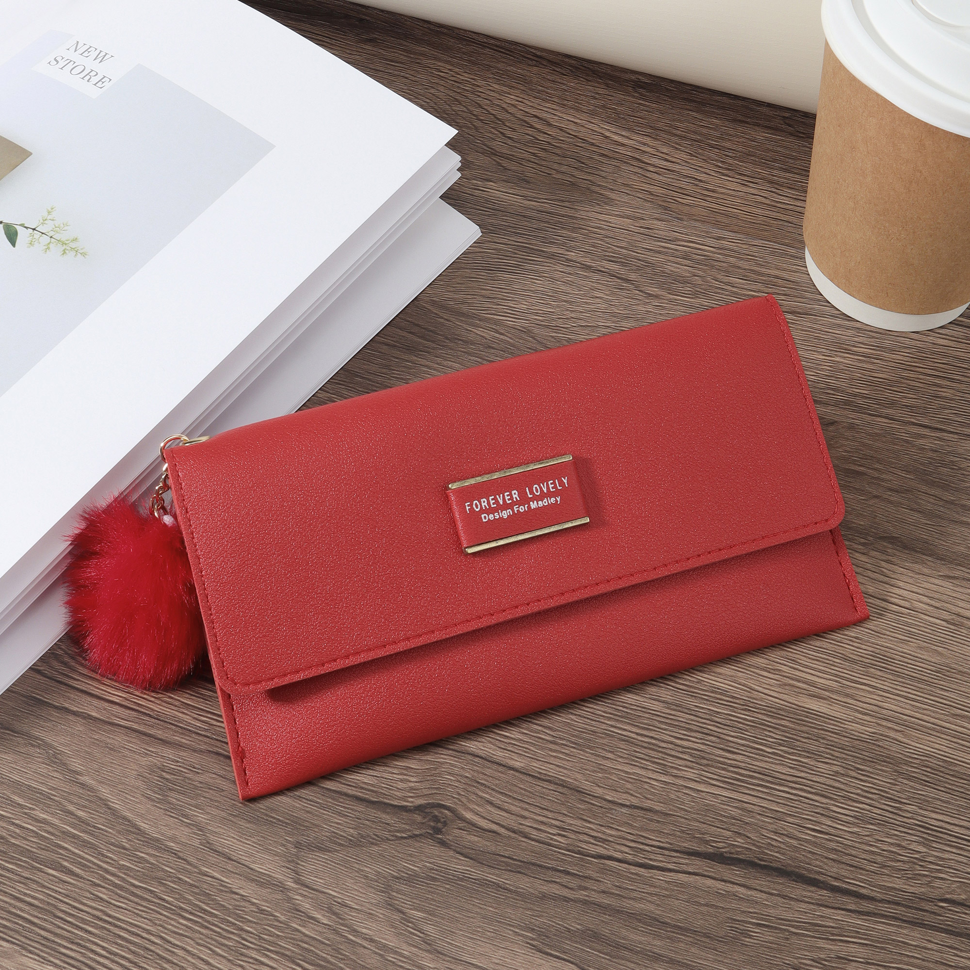 Luxury Foldable Long Wallet Fur Pom Decor Ultra Slim Clutch With 12 Card Slots RFID Women's Fashion Purse